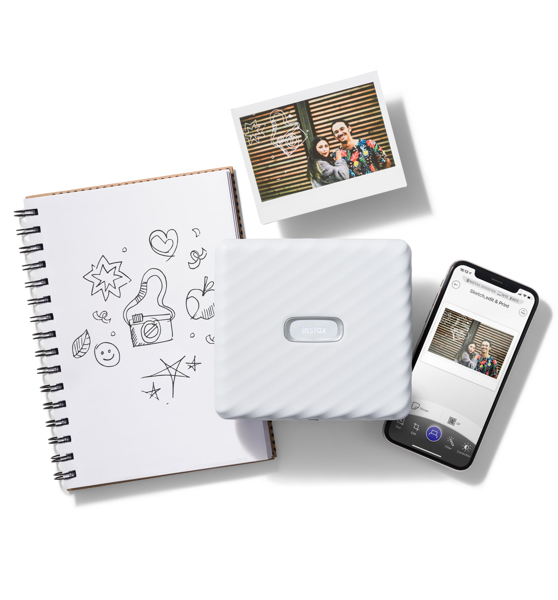 Customize your prints with messages, sketches, QR codes, and creative layouts using the instax app, then share big memories in a bigger format—anytime, anywhere.