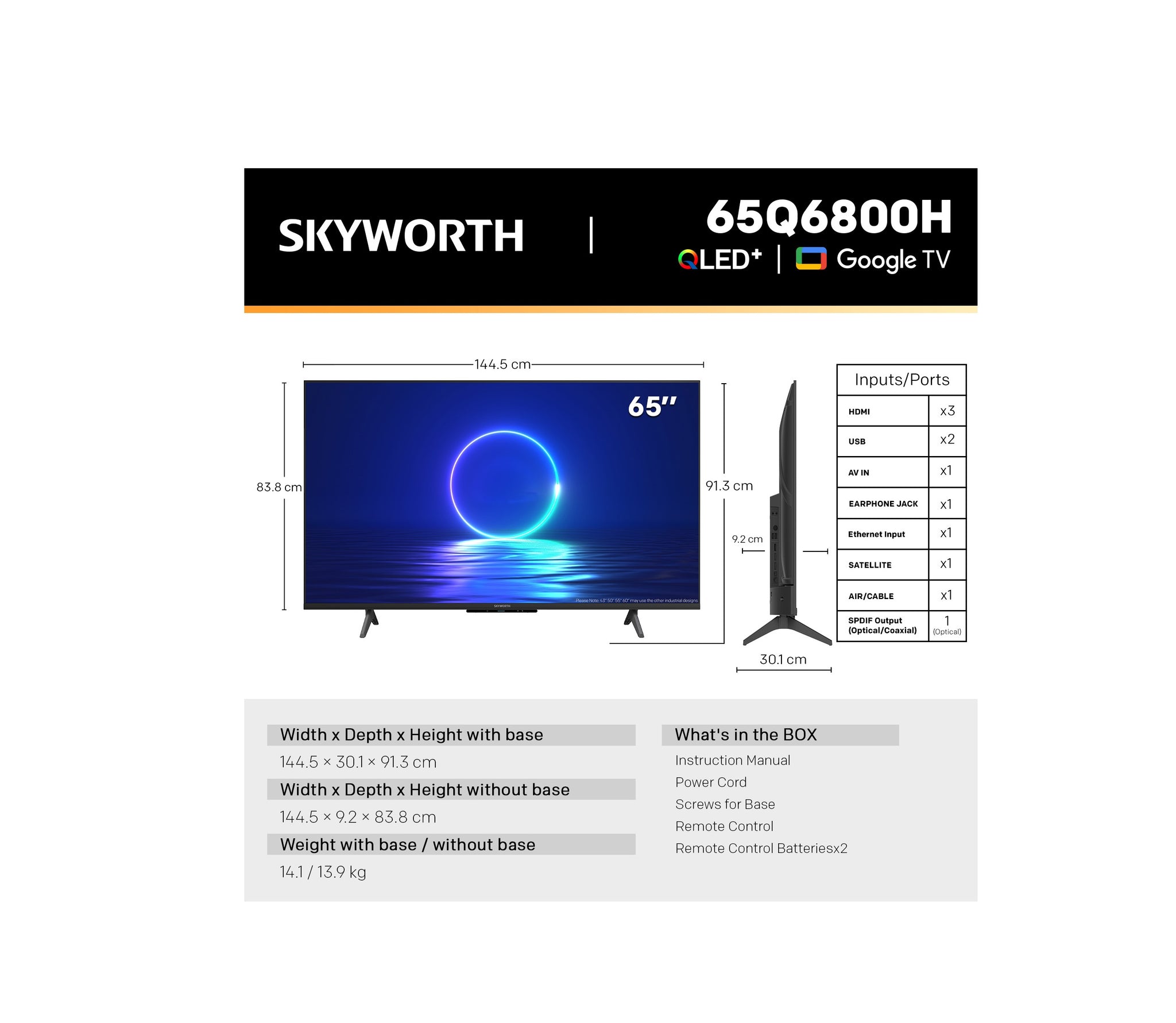 • Screen Size: 65 Inches